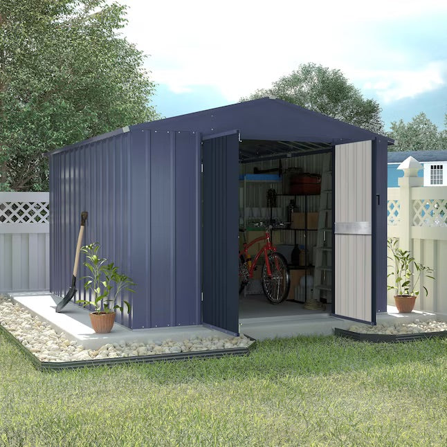 The sloped rooftop design of the metal storage shed would protect all your belongings from rain and snow
